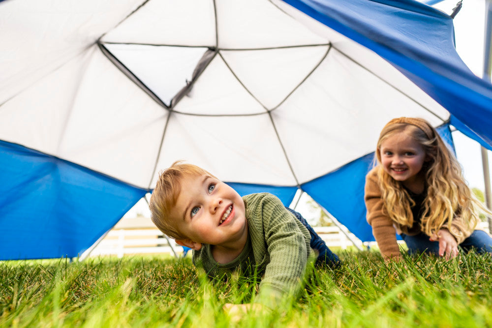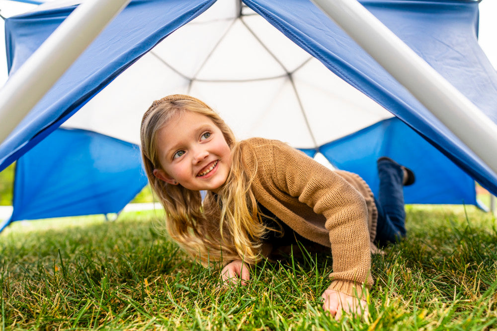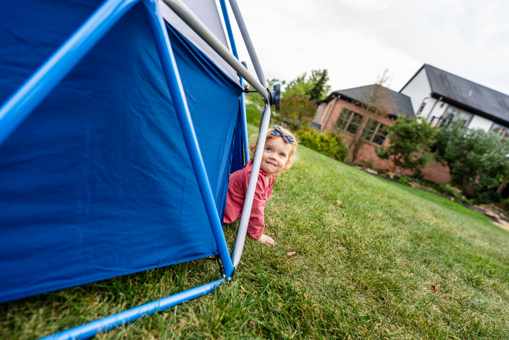 - SMALL FOOTPRINT — Measuring 86” in diameter and 46” tall, this sturdy climbing structure is perfect for compact yards taking up a small footprint. Canopy cover is is anti-tearing and has an open spot for children to get in and out